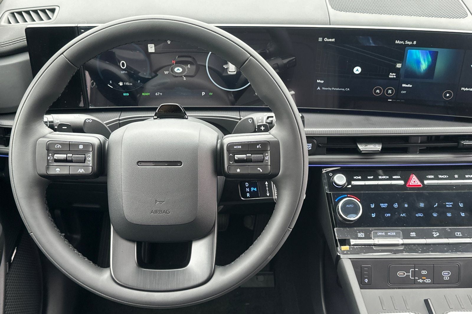 - Radio: AM/FM/HD Bose Premium Audio System -inc: 12 speakers including subwoofer, external amplifier, 12.3" wide touchscreen, wireless Apple CarPlay and Android Auto, Bluetooth® hands-free w/wireless audio streaming, dynamic voice recognition, USB connectivity, SiriusXM, wifi hotspot, Blue Link connected car system, navigation system including traffic flow w/incident data via HD Radio (HERE), OTA updates and rear seat quiet mode