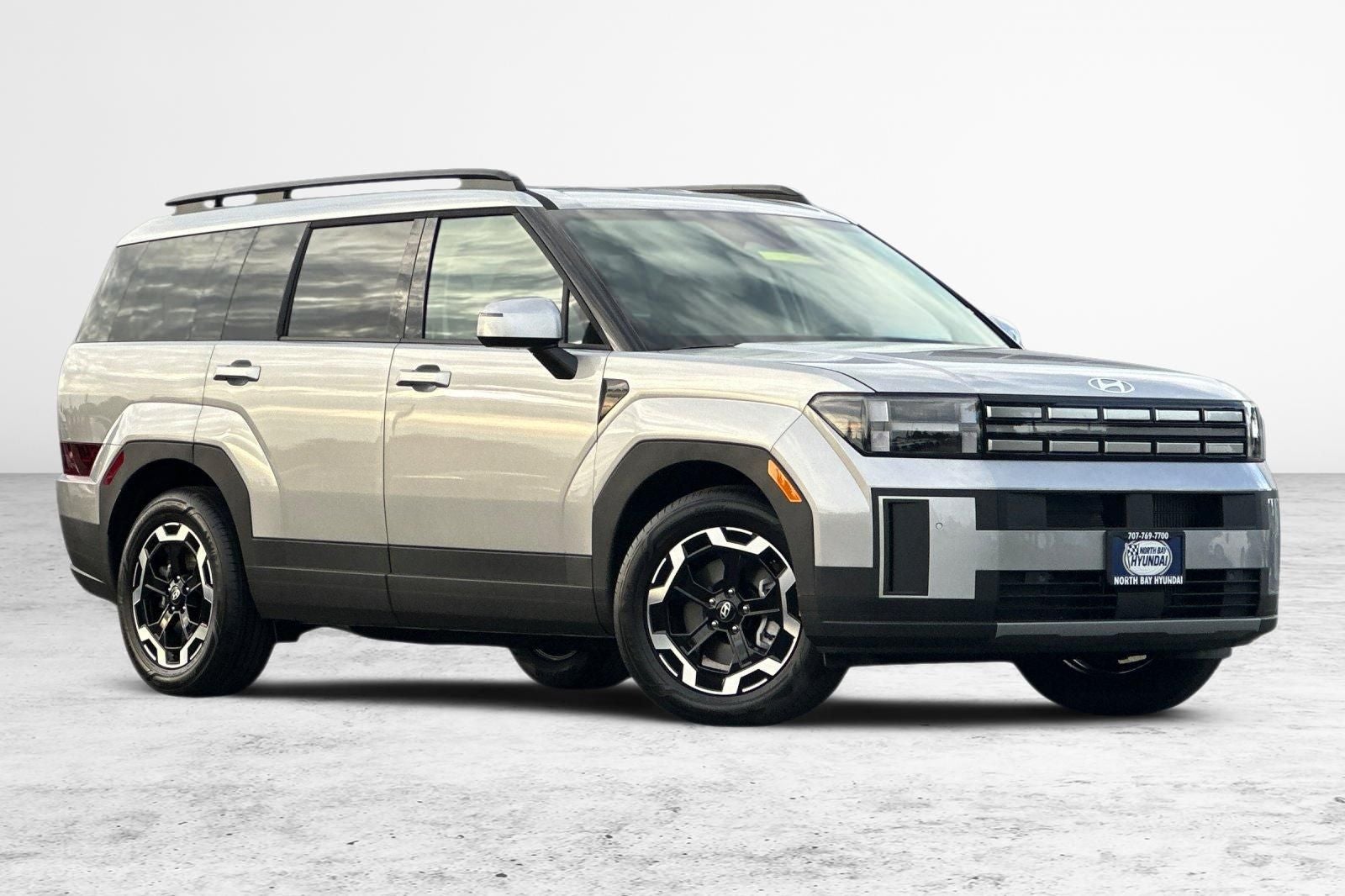Shimmering Silver Pearl 2026 Hyundai Santa Fe SEL AWD 8-Speed Automatic with SHIFTRONIC 2.5L I4 AWD, Black Premium Synthetic.