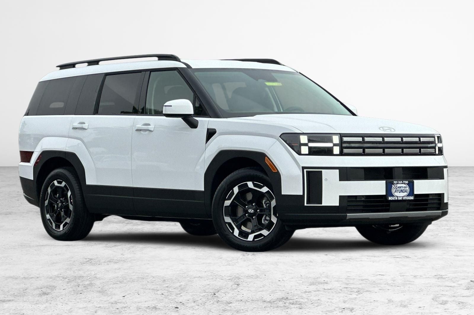 Serenity White 2026 Hyundai Santa Fe SEL AWD 8-Speed Automatic with SHIFTRONIC 2.5L I4 AWD, Black Premium Synthetic.