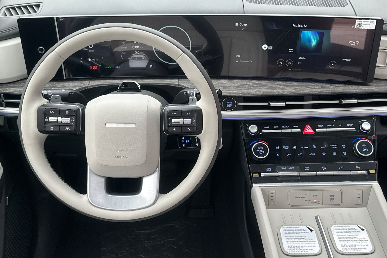 - Radio: AM/FM/HD Bose Premium Audio System -inc: 12 speakers including subwoofer, external amplifier, 12.3" wide touchscreen, wireless Apple CarPlay and Android Auto, Bluetooth® hands-free w/wireless audio streaming, dynamic voice recognition, USB connectivity, SiriusXM, wifi hotspot, Blue Link connected car system, navigation system including traffic flow w/incident data via HD Radio (HERE), OTA updates and rear seat quiet mode